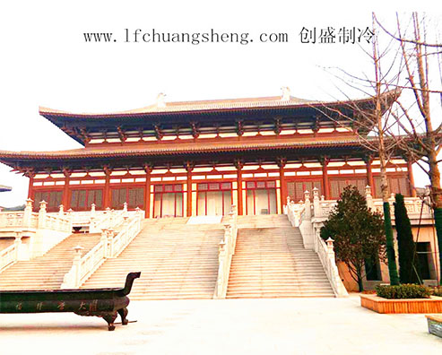 大雄宝殿空调系统采用格瑞德卧式明装风机盘管系统,通过原地源热泵机房接至室内空调系统,实现夏季制冷,冬季采暖;新风换气系统:采用格瑞德新风换气机组对空间环境进行通风换气,改善空气质量,既解决了新风量问题,又回收了排风中的能量,达到节能的目的。2015年5月份已安装调试完毕,运行效果良好,得到用户高度认可。